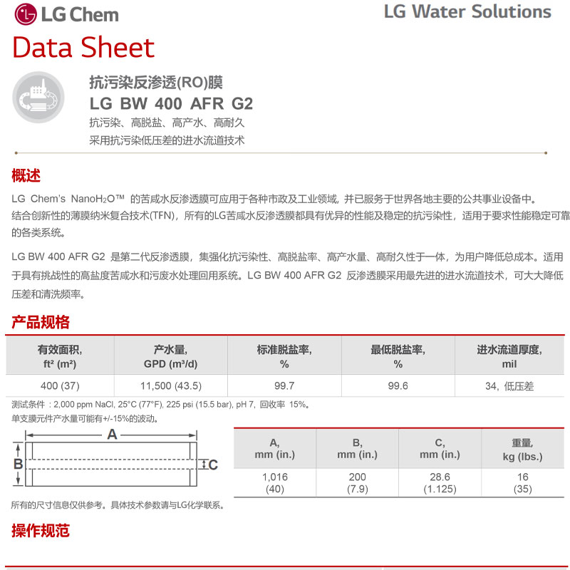 【LG反滲透膜】LG BW 2521 R、流量大、抗污染、壽命長